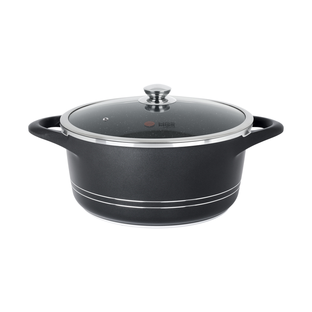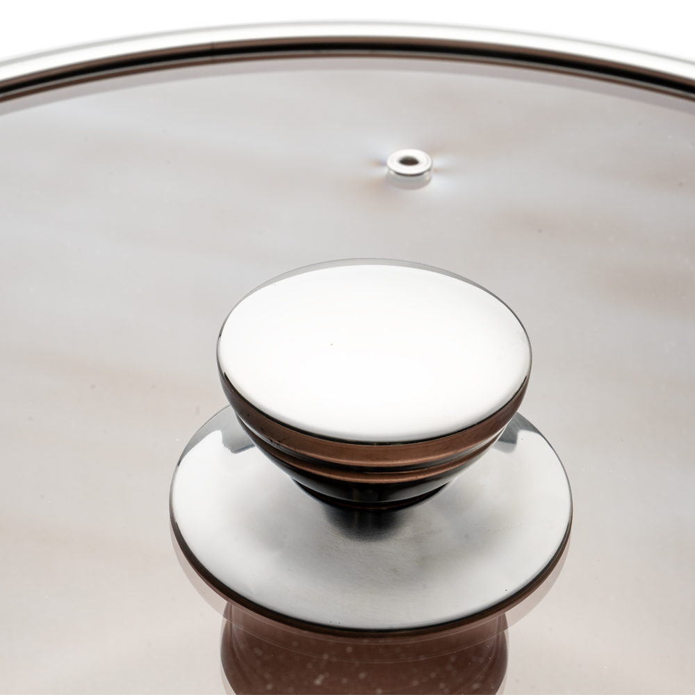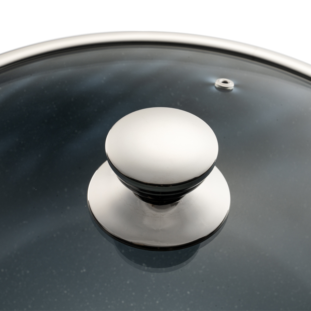 قابلمه تک طرح ایتالیا سایز 32 روکشی از جنس گرانیت نچسب دارد که به آشپزی آسان و بیدردسر کمک میکند. درب این محصول از جنس پیرکس است.