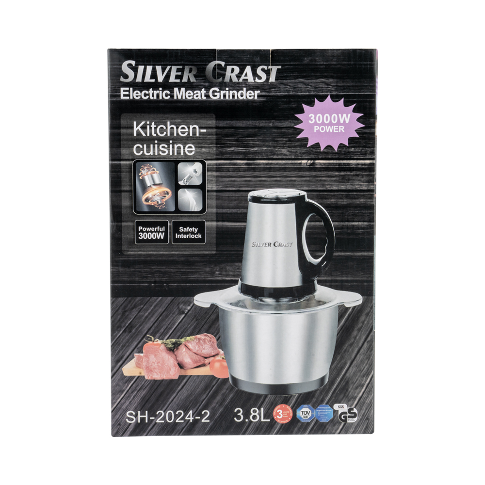 خردکن متوسط سیلور کرست مدل SH-2024-2 دارای بدنه استیل و 3.8 لیتر گنجایش مخزن، مناسب خرد کردن سبزی، میوه، آجیل و دیگر مواد غذایی است.