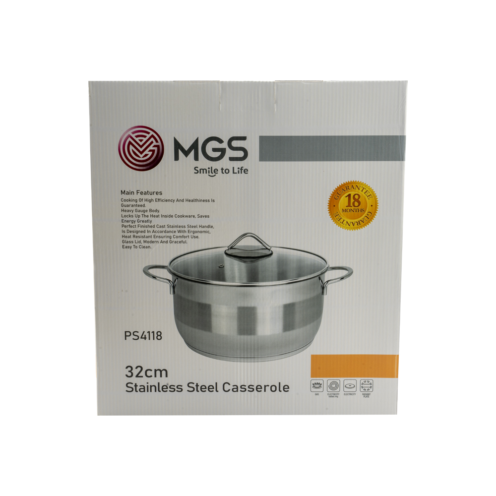 قابلمه تک سایز 32 بدنهای از جنس استیل نچسب دارد که به آشپزی آسان و بیدردسر کمک میکند. درب این محصول از جنس پیرکس است.