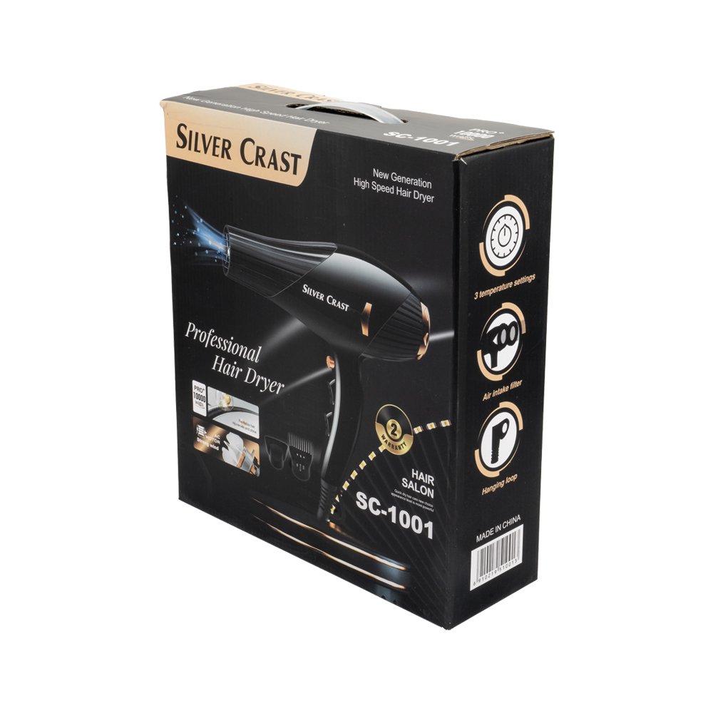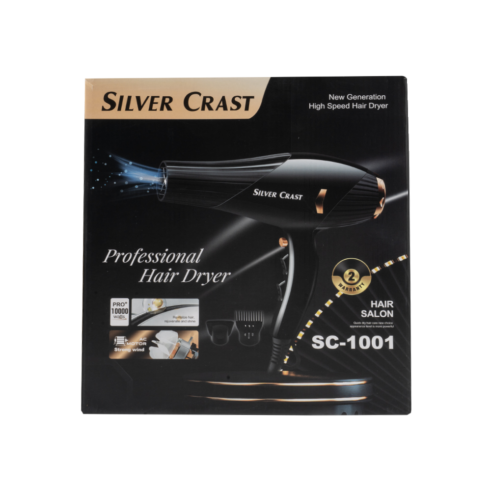 سشوار حرفه ای کد SC-1001 از برند سیلور کرست یک ابزار عالی برای خشک کردن و حالت دادن به موهاست. این سشوار با سرعت بالا و قابلیت تنظیم دما مناسب استفاده در خانه و سالن زیبایی است.