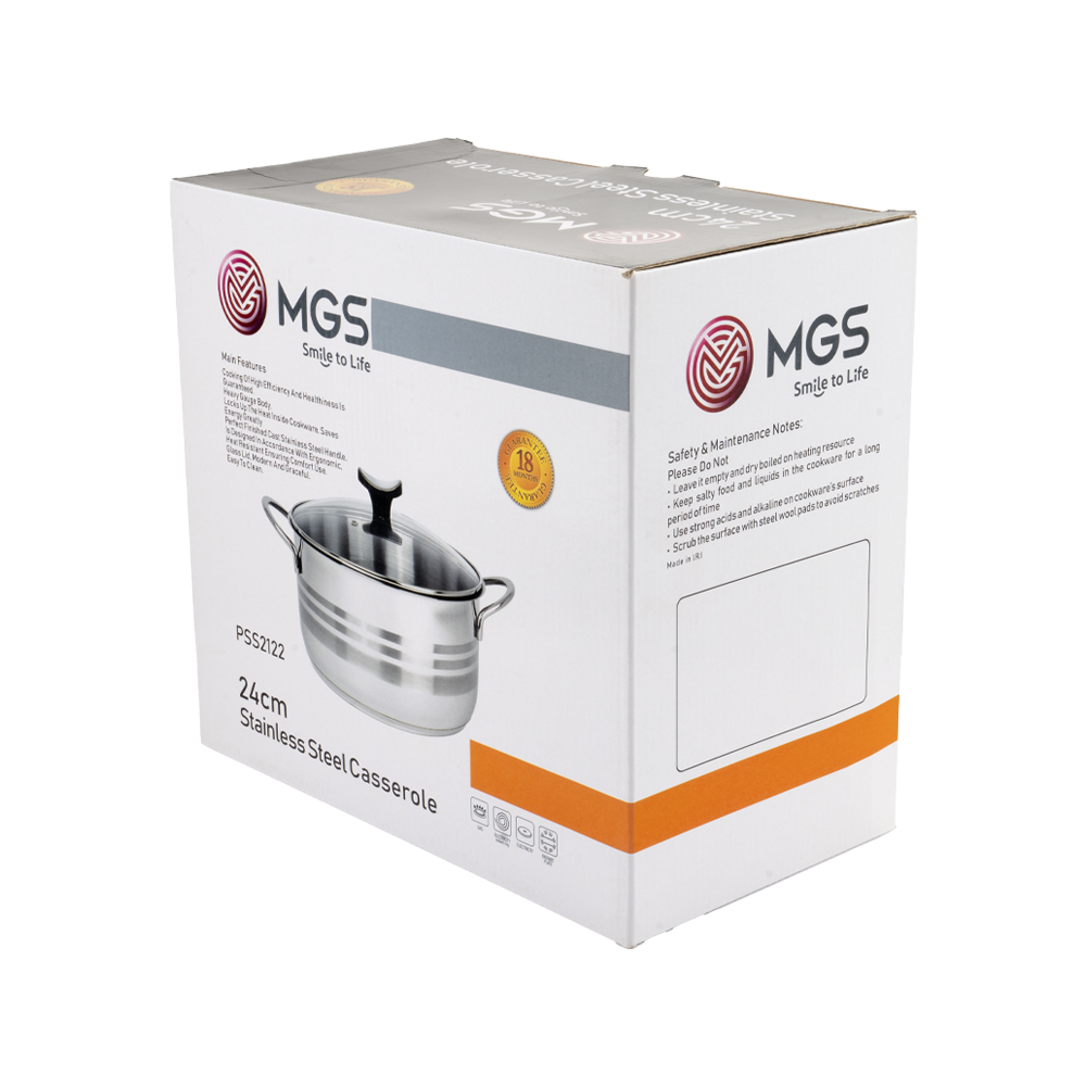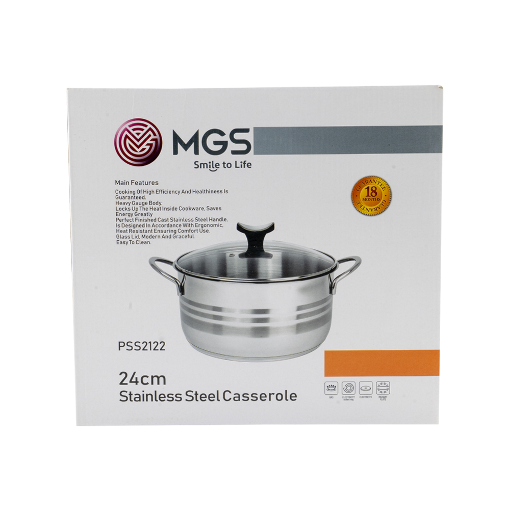 قابلمه تک سایز 24 بدنهای از جنس استیل نچسب دارد که به آشپزی آسان و بیدردسر کمک میکند. درب این محصول از جنس پیرکس است.