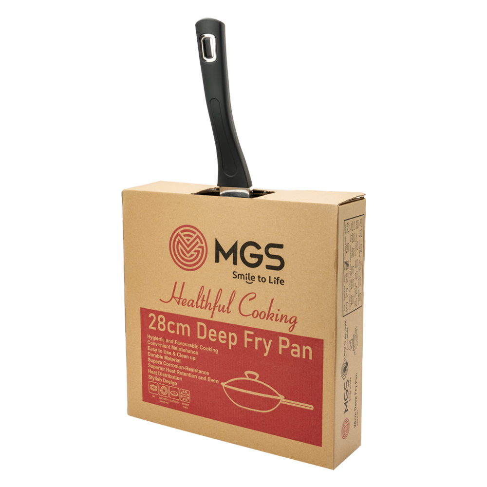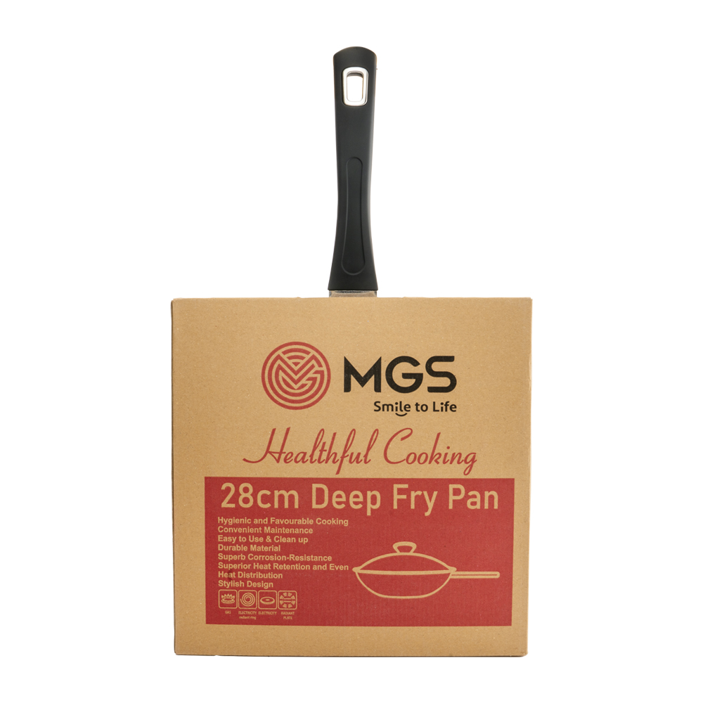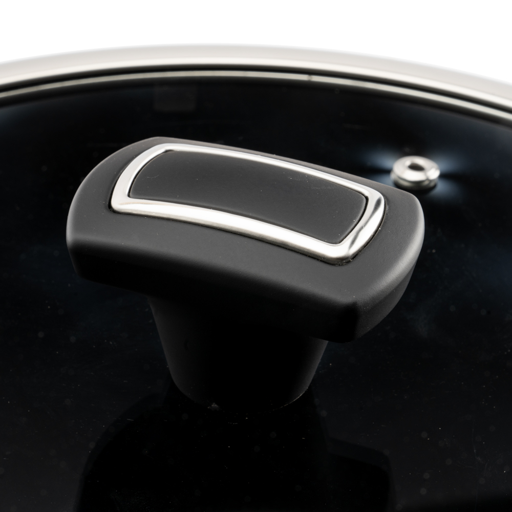 تابه تک طرح فورج سایز 28 روکشی از جنس گرانیت نچسب دارد که به آشپزی آسان و بیدردسر کمک میکند. درب این محصول از جنس پیرکس است.