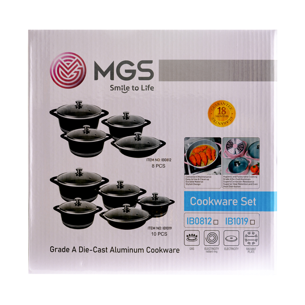 سرویس قابلمه 8 پارچه طرح ایتالیا B کد IB0812 یک سرویس ظروف پخت و پز، شامل سه قابلمه با قطر 20 سانتی متر، 24 سانتی متر،28 سانتی متر و یک تابه دو دسته با قطر 28 سانتی متر است.