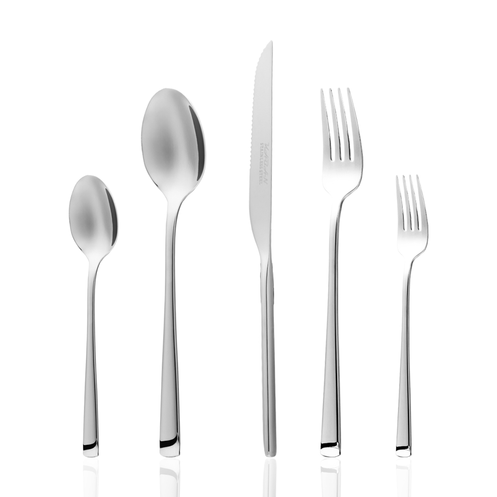 ست 1 نفره قاشق و چنگال استیل شامل 1 عدد قاشق غذا خوری و 1 عدد چنگال غذا خوری 1 عدد قاشق مربا خوری، 1 عدد چنگال میوه خوری و 1 عدد کارد میوه خوری قابل سفارش در تعداد بالا نیز میباشد.